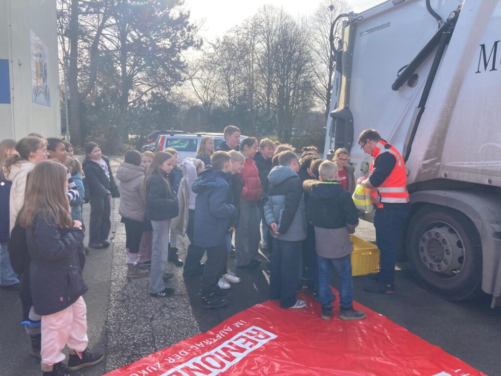 Ein wichtiger Austausch aller ViertklässlerInnen der Grundschule zu dem Thema Verkehrssicherheit (LKW der Firma Remondis) am 09. Februar 2026